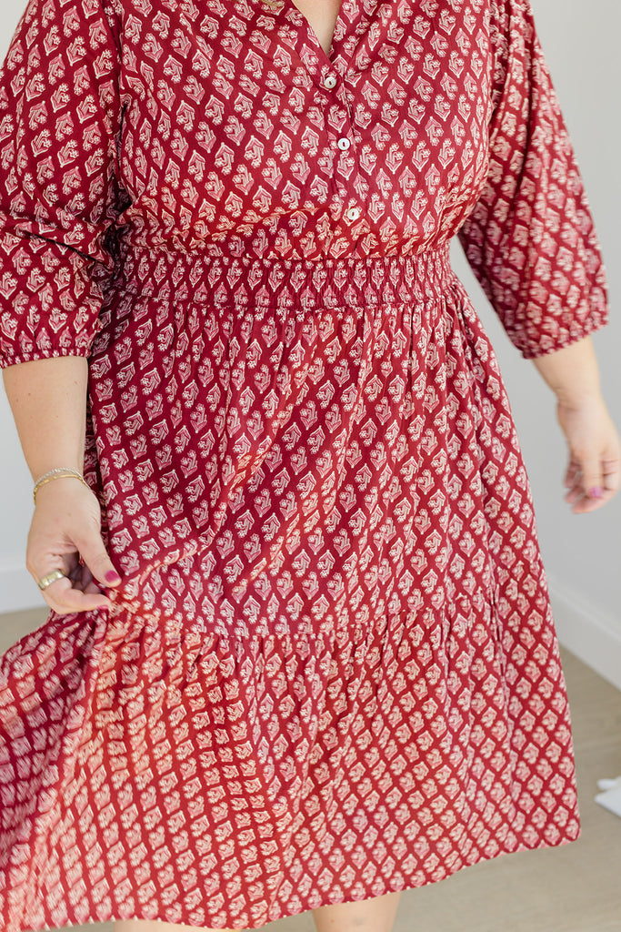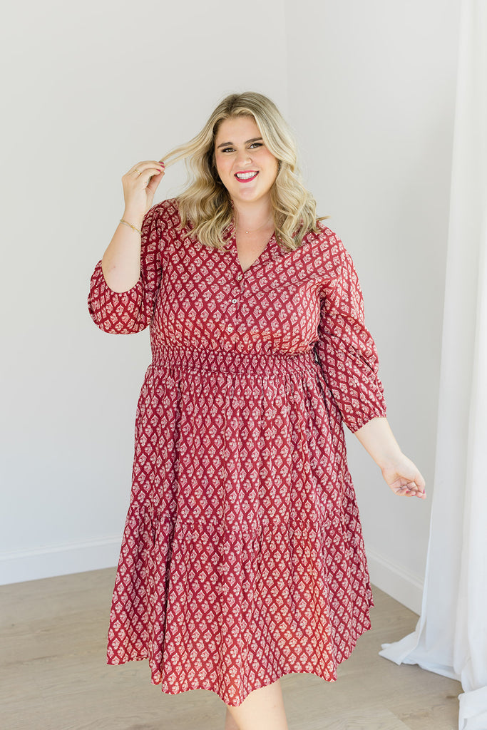 The Francesca Midi Dress in Spiced Merlot