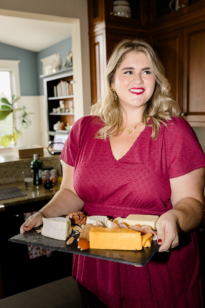 Add your favorite boots or heels for a look that transitions seamlessly from festive hosting to year-round wear. Pairs well with the The Tami Tote in Pistachio Pink and The Emily Jacket in Pistachio Pink.