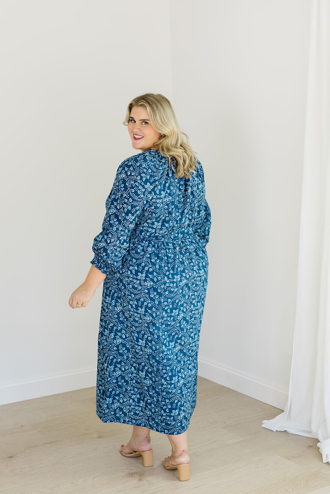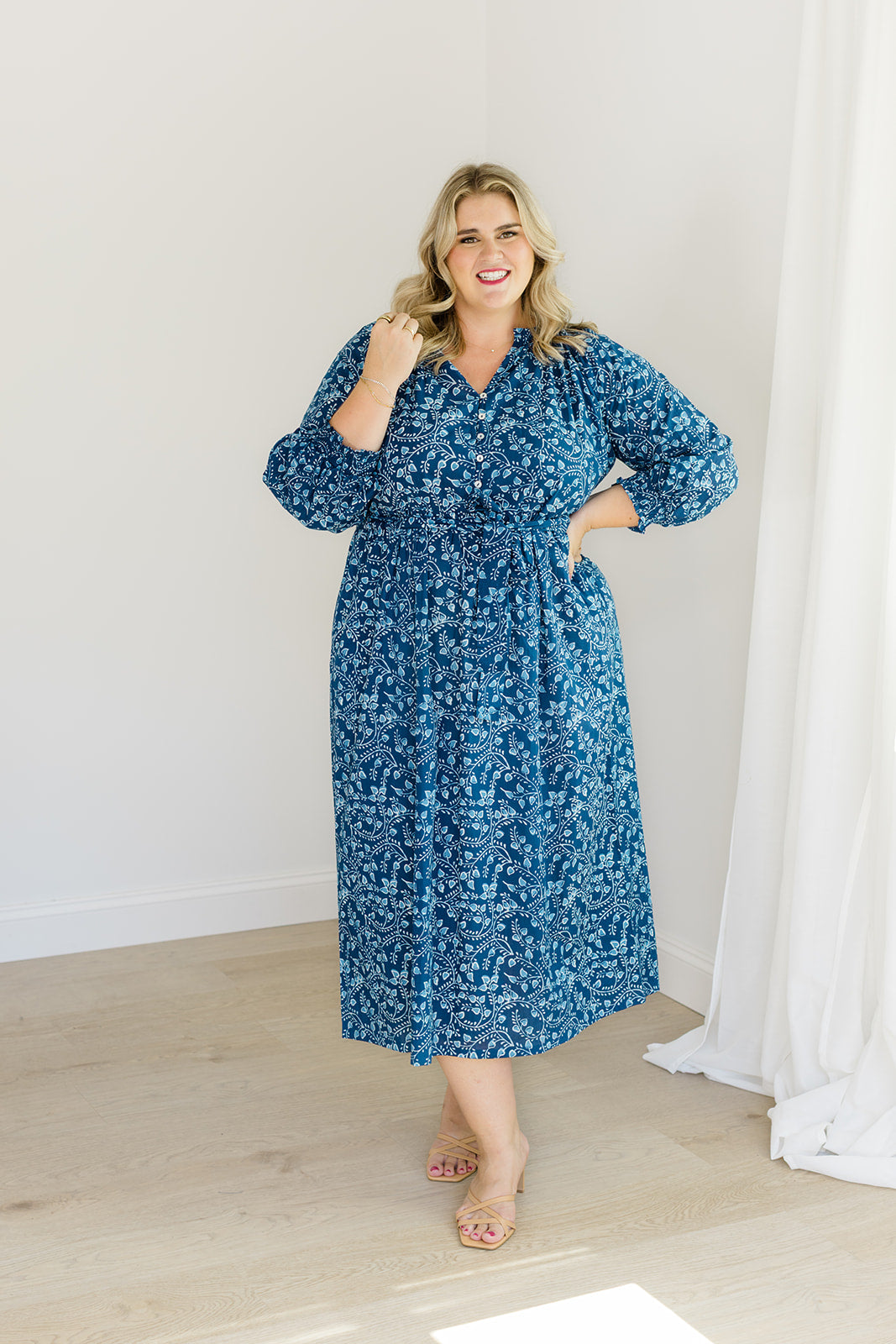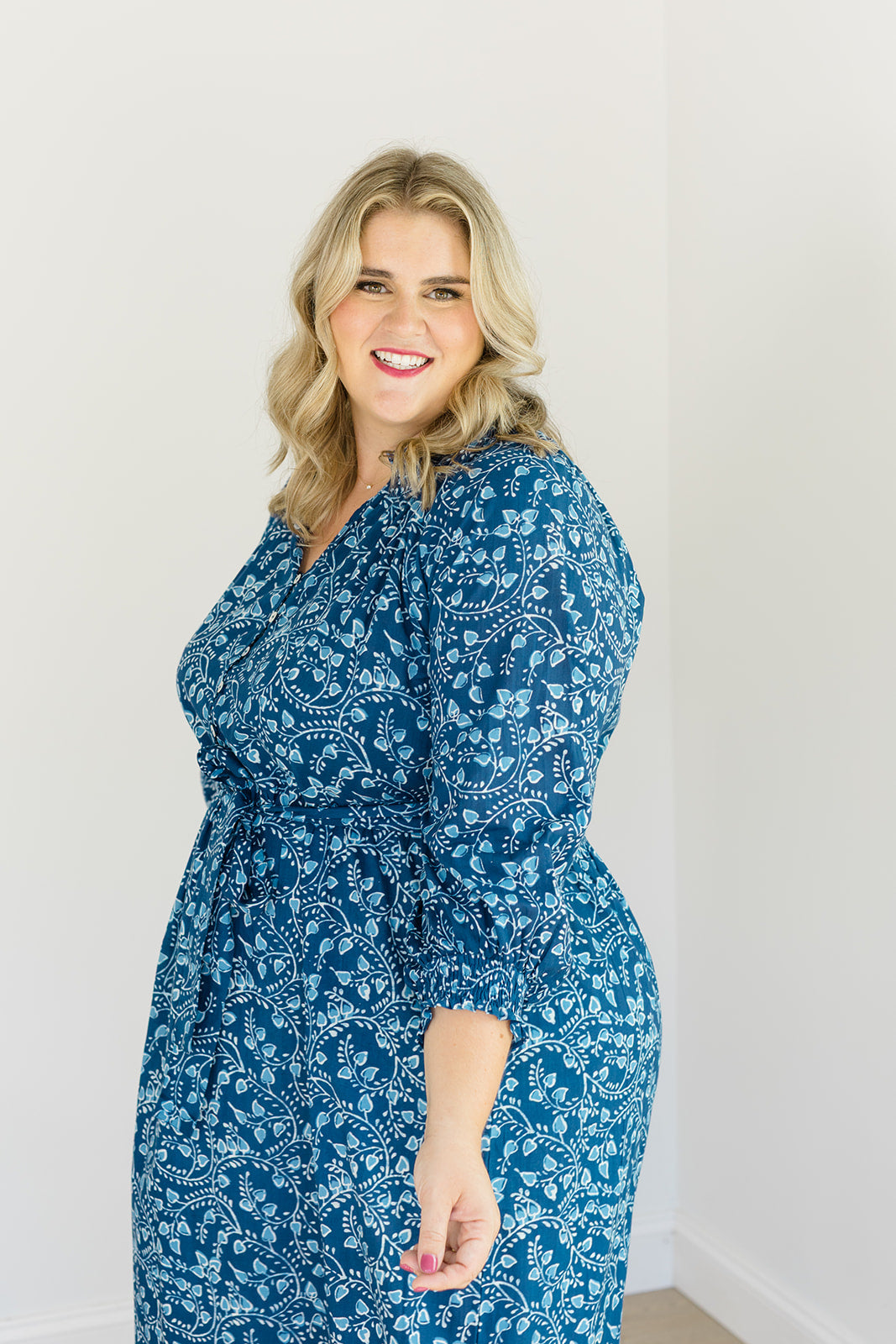 If you want a holiday dress you can wear long after the holidays, The Savana is for you. This effortlessly flattering midi features our custom Winter Blossom print — a deep, cool blue floral that feels both timeless and fresh.